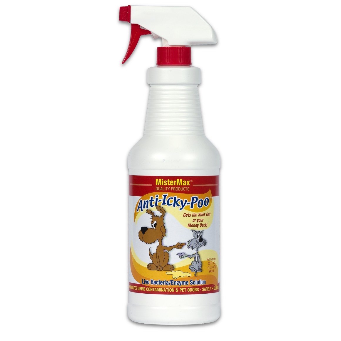 • Anti-Icky-Poo uses live bacteria to eliminate any organic material left behind by the pets in fabrics and carpet. Unlike some chemical cleaning products that only mask over the smell, Anti-Icky-Poo not only removes the stain, but it also eliminates the source that causes pet odors to come back over and over again.