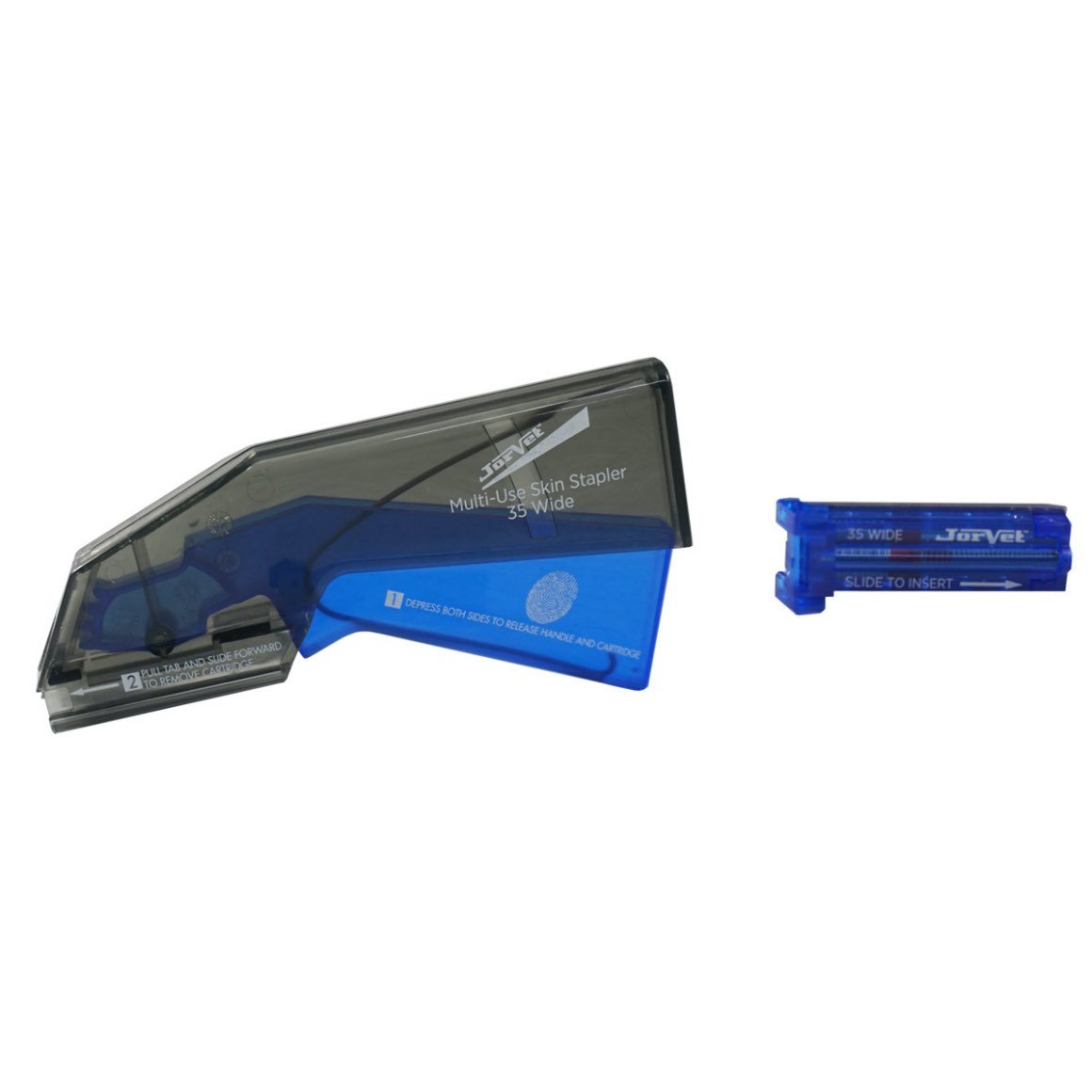 • Most skin staplers are considered single use devices and cannot be safely autoclaved. 35 staples is the standard cartridge size. The average vet surgery uses only 7-10 staples. Cartridge of 35 staples allows you to get 3-5 surgeries per cartridge which is about 20-30% the cost of suture. Sterile.