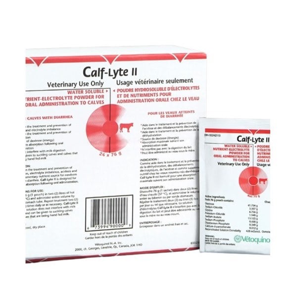 • Calf-Lyte II and Calf-Lyte II HE deliver water soluble electrolytes and alkalinizing agents. Administered orally to diarrheic calves, they help to improve their general condition by correcting dehydration and acidosis.