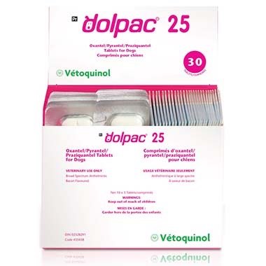• Dolpac 25 is a broad spectrum anthelmintic for dogs.