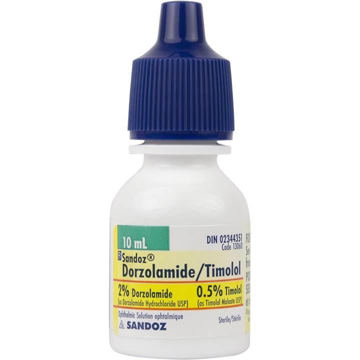 • Each mL of sterile, clear, colourless, slightly viscous ophthalmic solution, contains: dorzolamide 20 mg (dorzolamide hydrochloride USP 22.26 mg) and timolol 5 mg (timolol maleate USP 6.83 mg). Nonmedicinal ingredients: benzalkonium chloride 0.075 mg (as preservative), dihydrate sodium citrate, hydroxyethyl cellulose, mannitol, sodium hydroxide and water for injection.