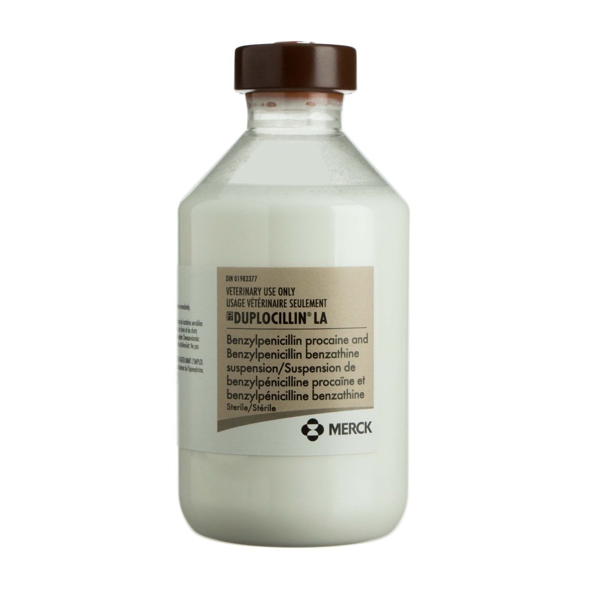 • Duplocillin® LA is a sterile aqueous suspension for injection, containing per mL 150,000 I.U. procaine penicillin G (B.P.) and 150,000 I.U. benzathine penicillin G (B.P.) and as preservatives, 1.2 mg methylparahydroxybenzoate and 0.13 mg propylparahydroxybenzoate.