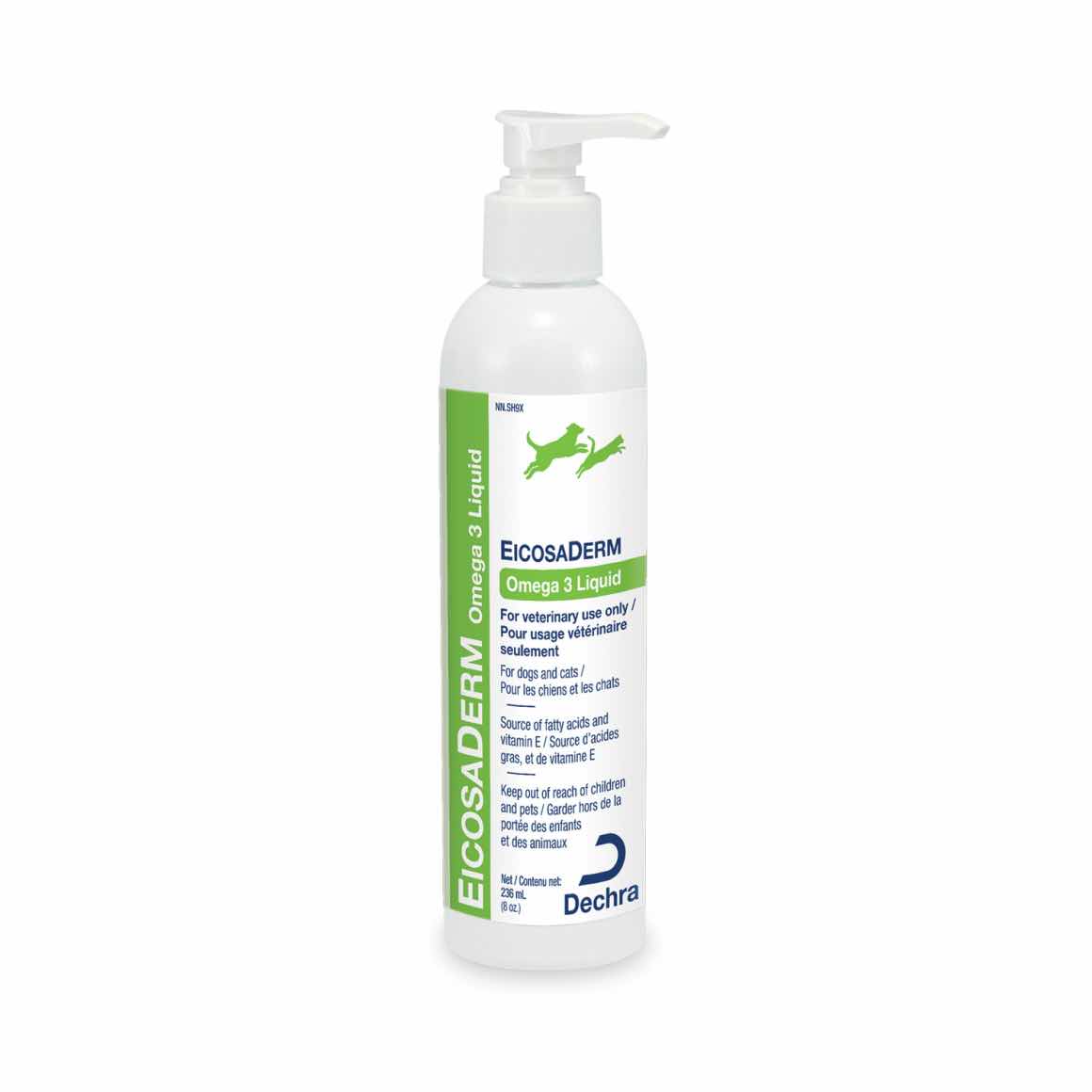 Dermatology products and omega-rich formulas promote healthy skin and a shiny coat