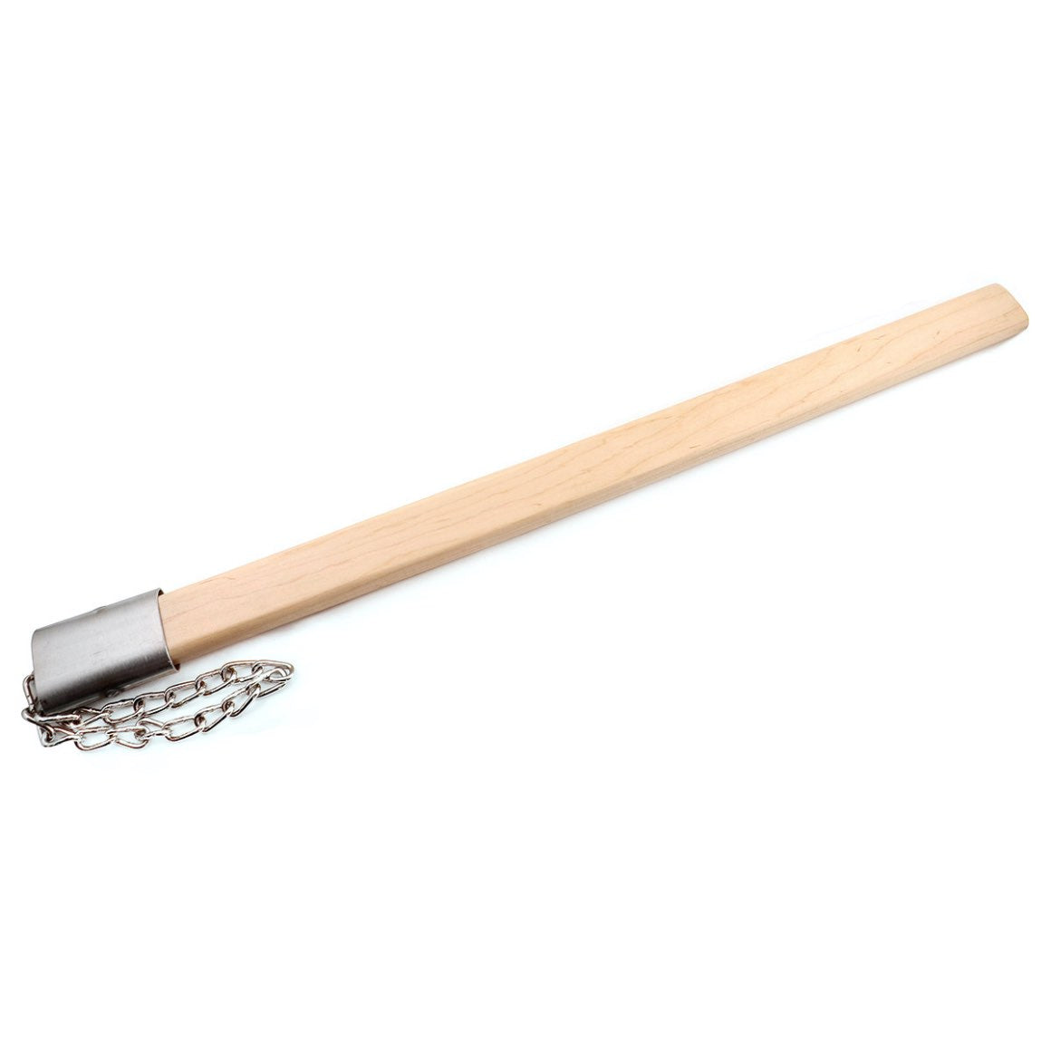 • Chain twitch with plated chain. 5 in diameter. Loop with 25 in flat wooden handle.
