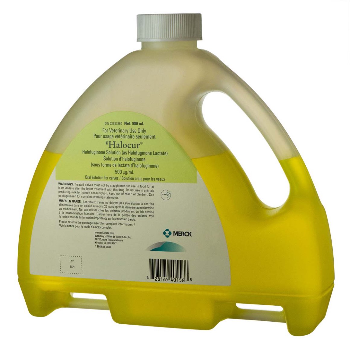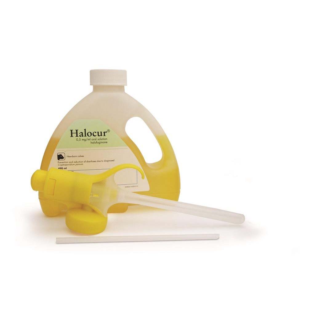 HALOCUR is an anti-protozoal solution indicated as an aid in reducing clinical signs of cryptosporidiosis caused by Cryptosporidium parvum in new born calves, when administered orally (after colostrum or milk/milk replacer feeding) for the first 7 days of life at a dosage of 100 µg of halofuginone base per kg of body weight.