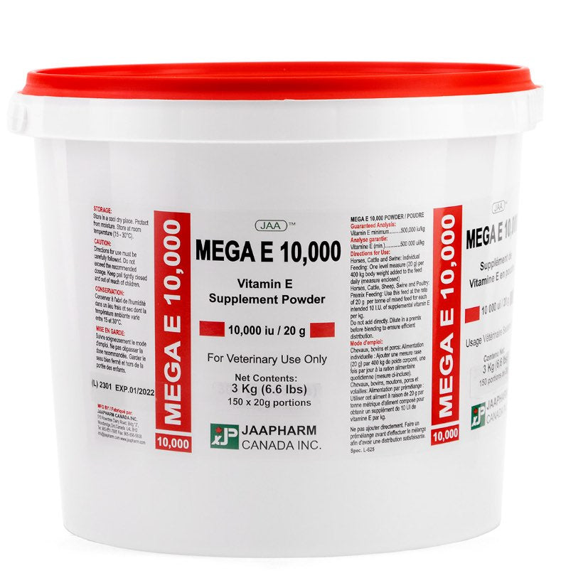 • Vitamin E supplement powder for horses, cattle, and swine.