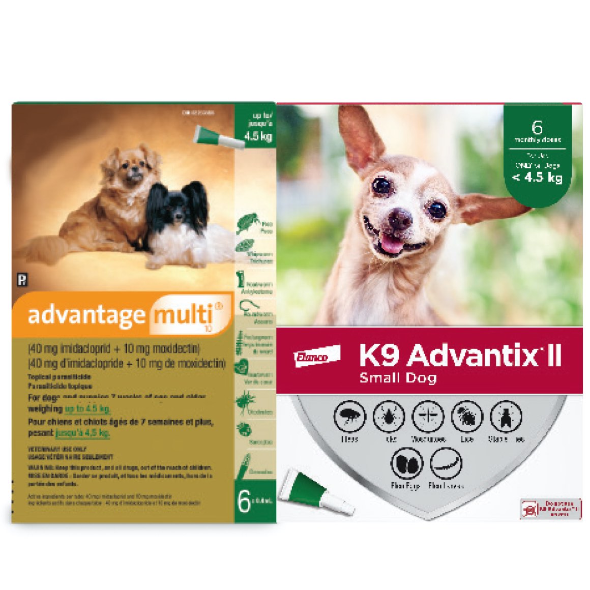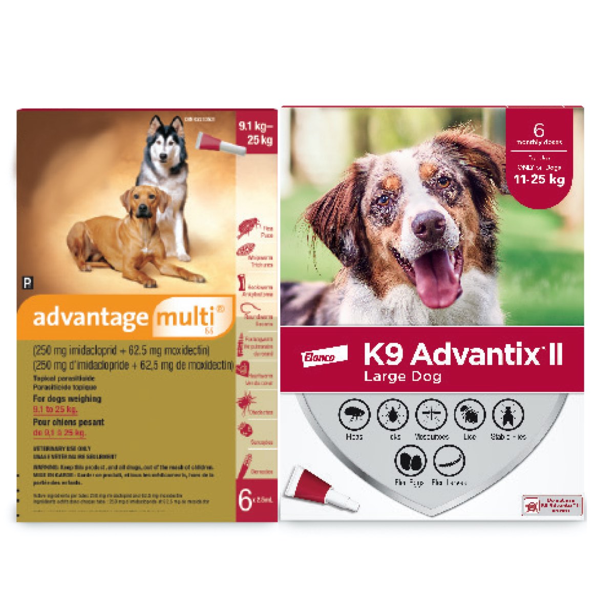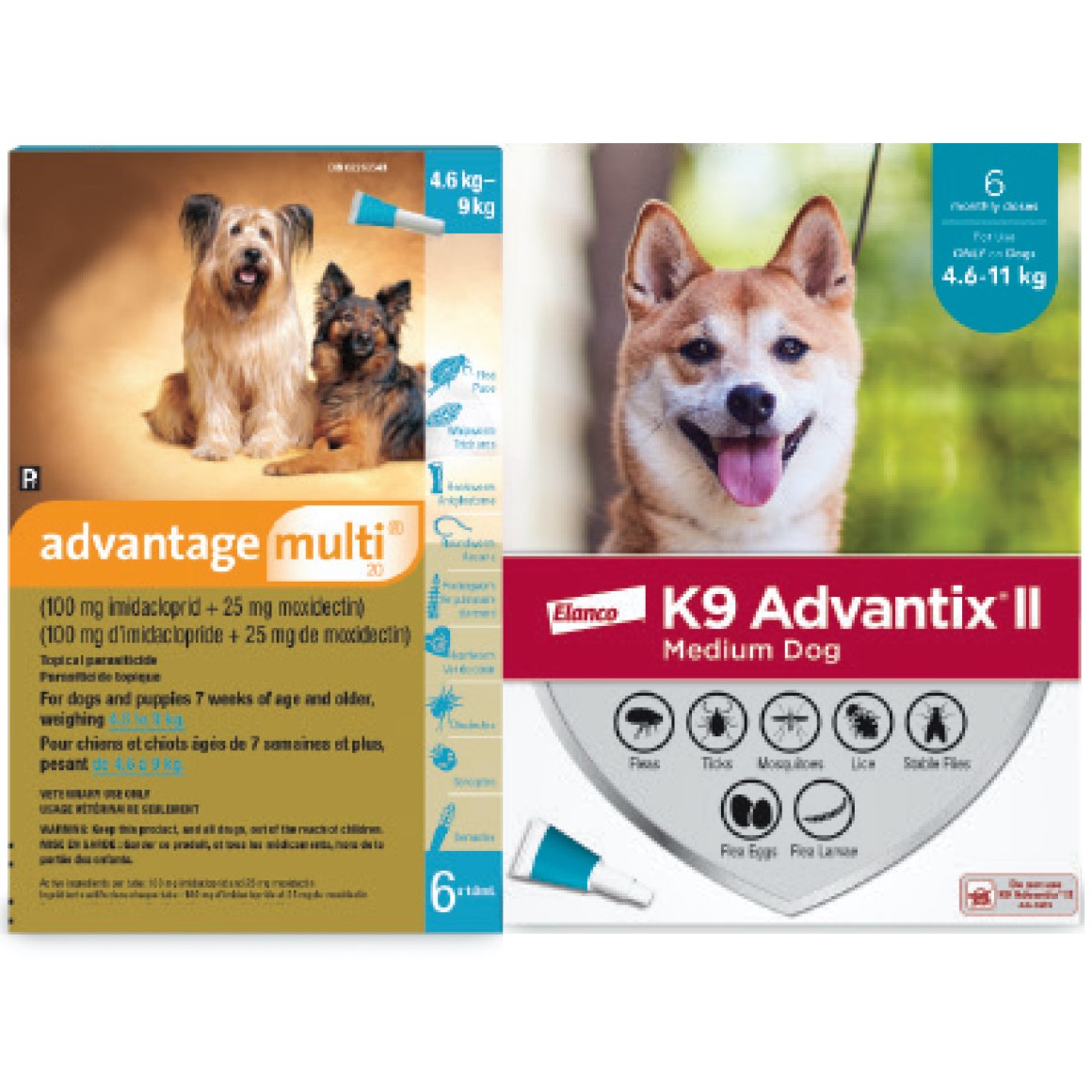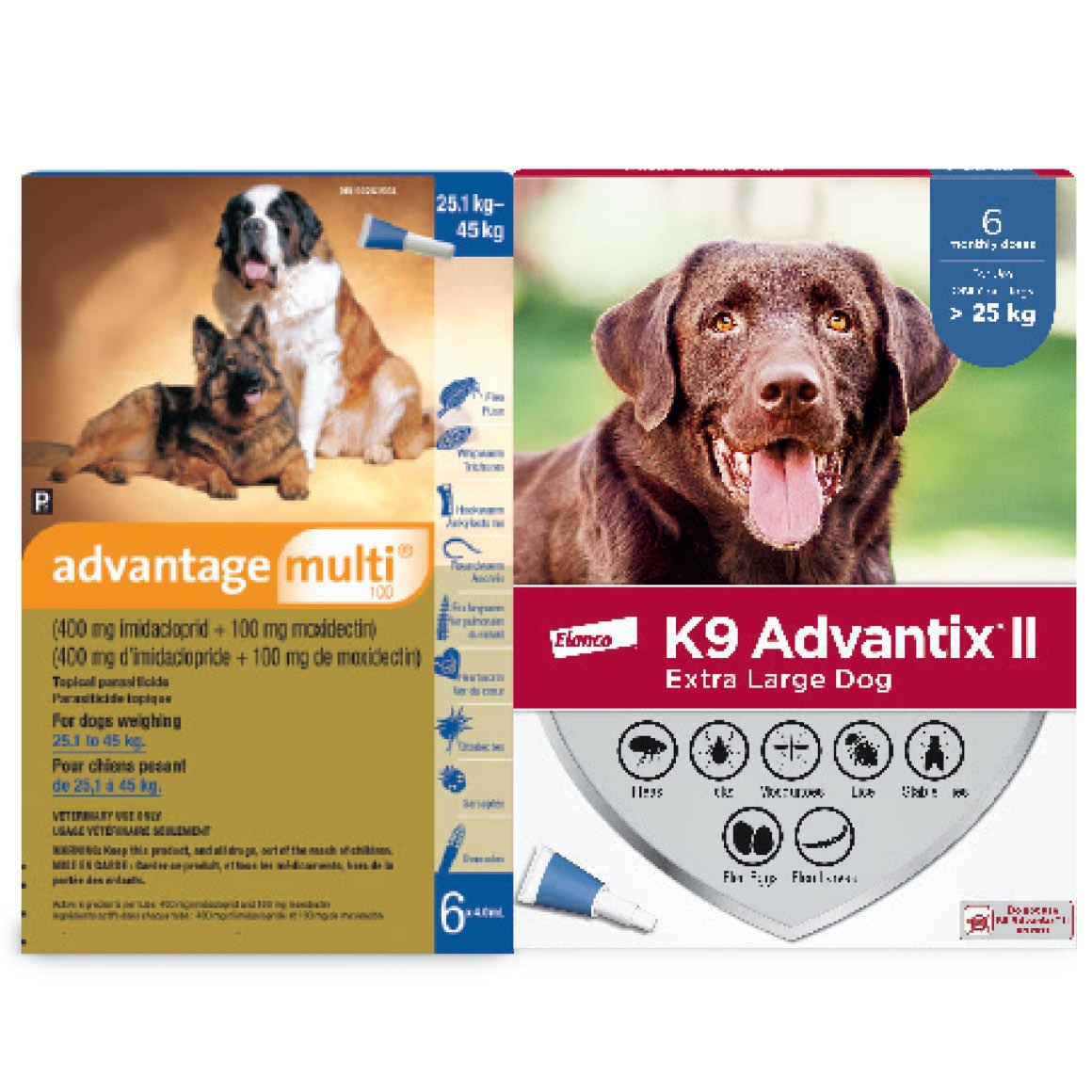 • The Multi-Duo 100 includes: 1 box of Advantage multi 55 (6 tubes x 4.0 mL) and 1 box of K9 Advantix II X-Large Dog (6 tubes x 4.0 mL).