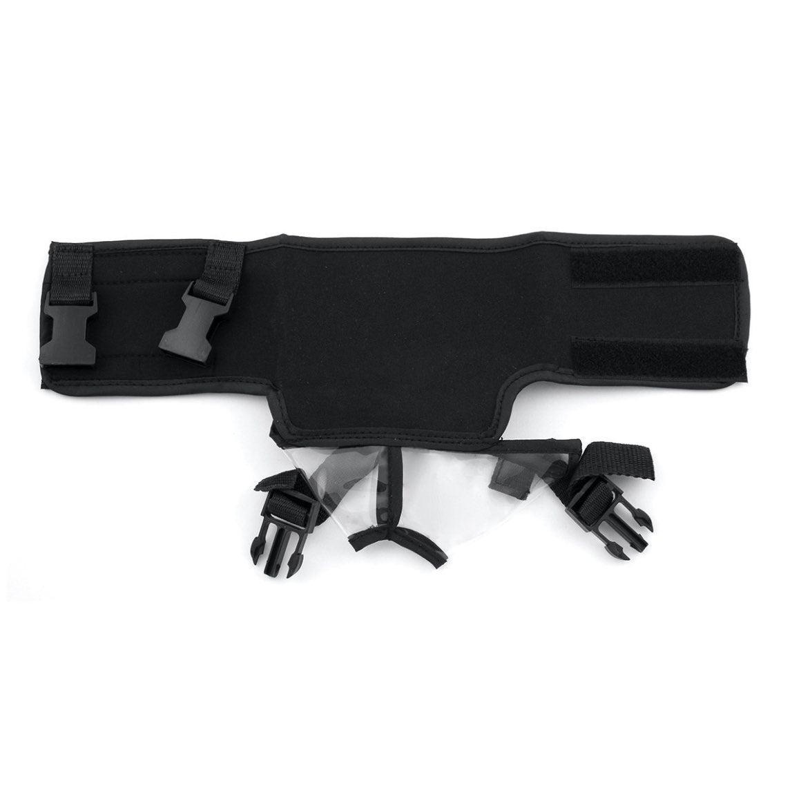 • Muzzle with a transparent cone and neck restrain flap to visualize mouth teeth and perform clinic procedures on restrained but relaxed cats.