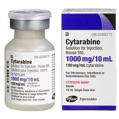 • Each mL contains 20 mg cytarabine, with sodium chloride, hydrochloride acid and/or sodium hydroxide to adjust pH and Water for Injection. Single dose Vial.