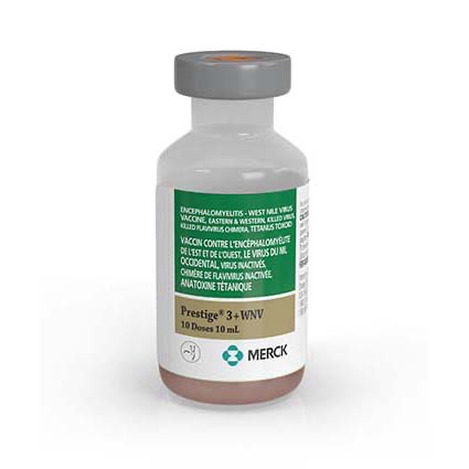 • A combination of inactivated, concentrated, adjuvanted, tissue culture origin equine encephalomyelitis viruses (Eastern and Western), West Nile virus - flavivirus chimera and tetanus toxoid.