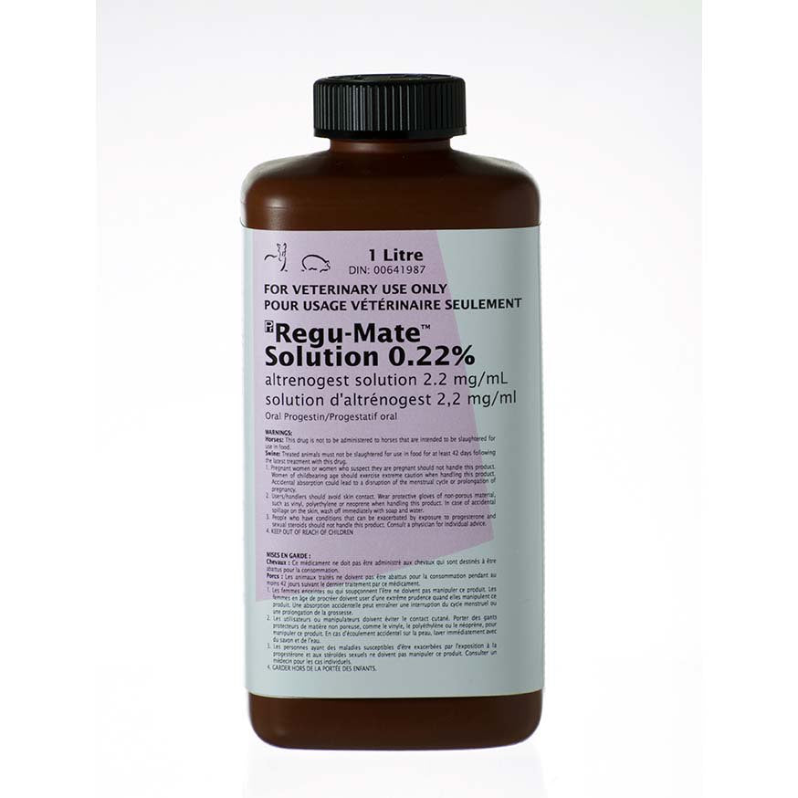 • Each mL of Regu-Mate® (altrenogest) Solution 0.22% contains 2.2 mg of altrenogest in an oral solution.
