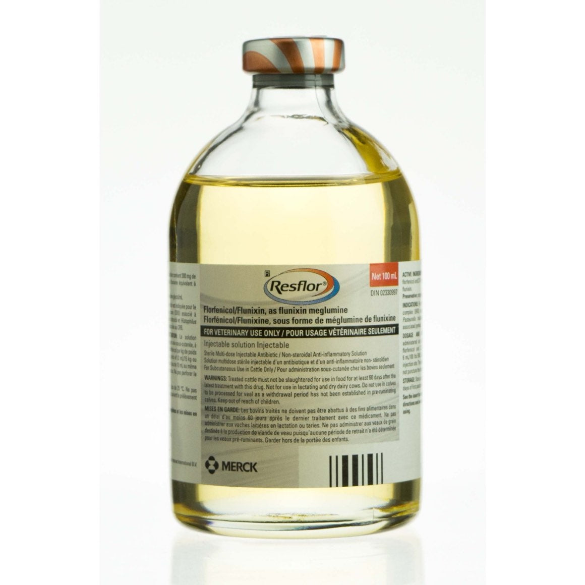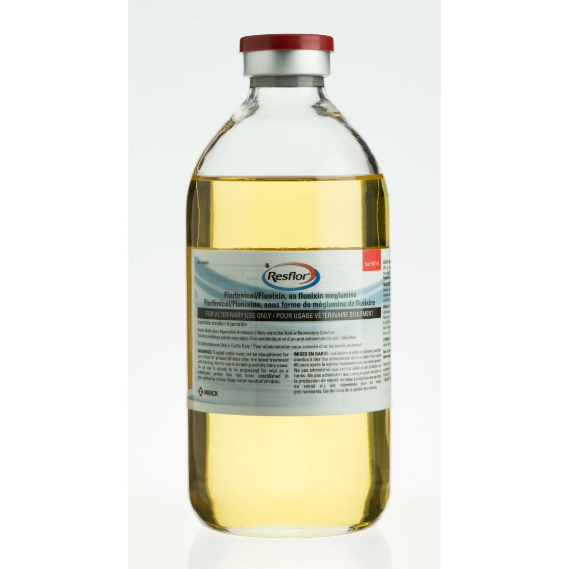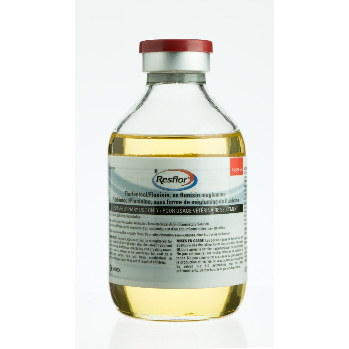 • Resflor 500ml.  Resflor is a sterile solution of a synthetic broad-spectrum antibiotic and a non-steroidal anti-inflammatory drug.
