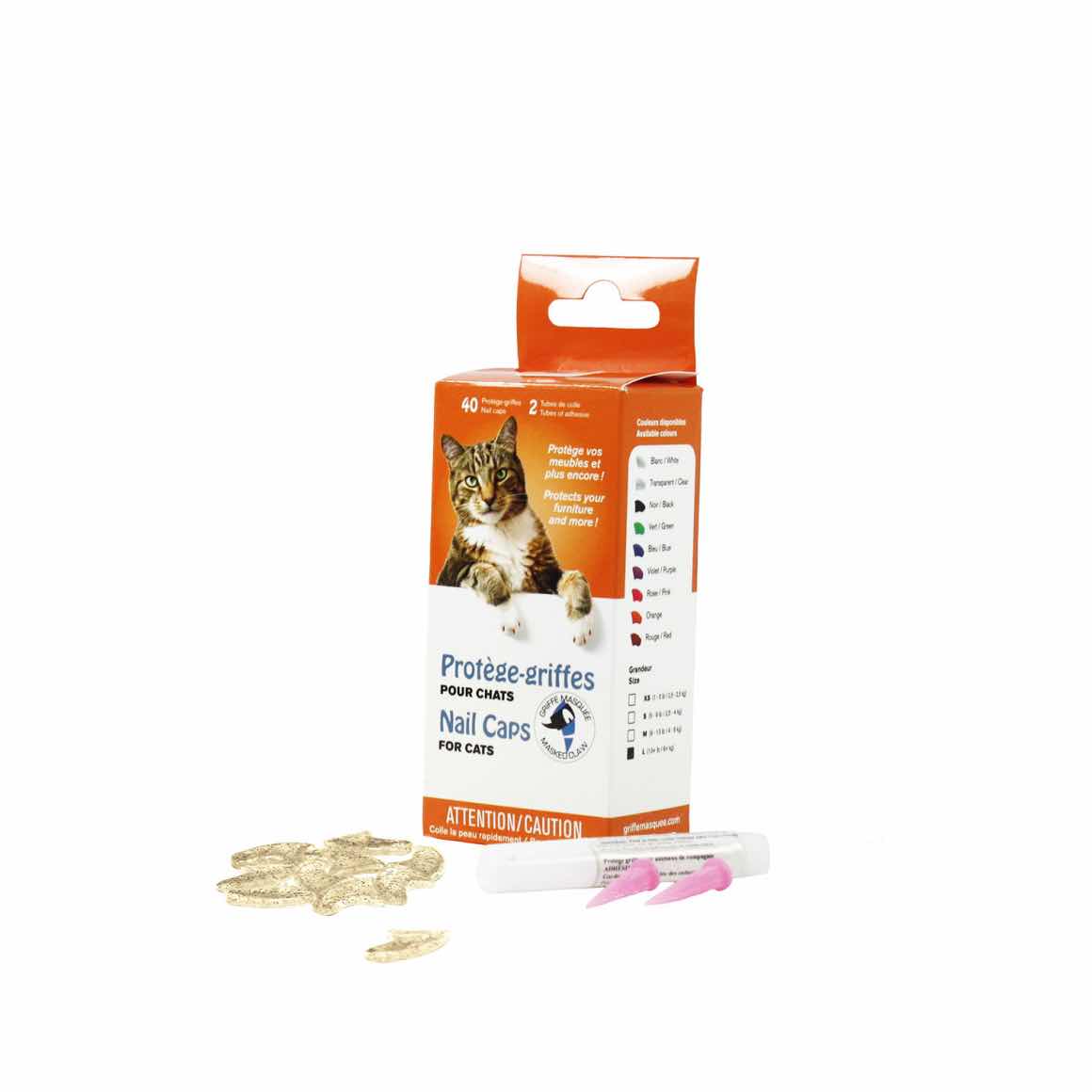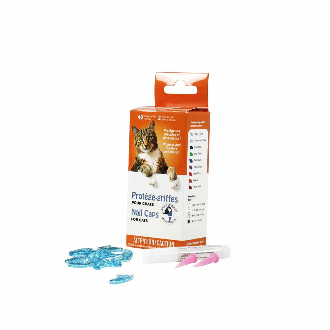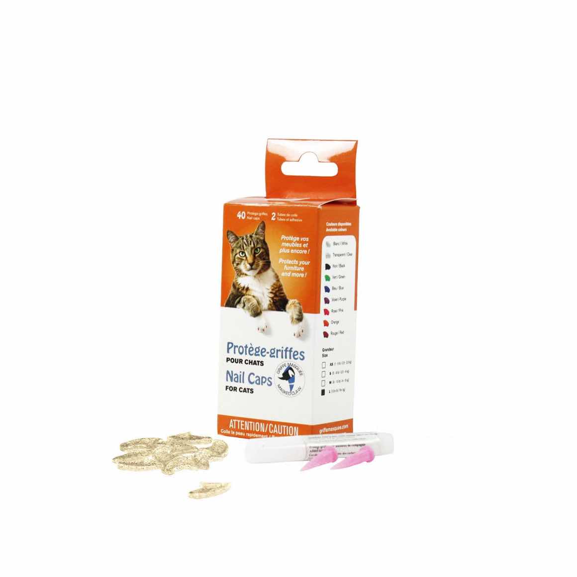 These nail caps are practical, safe and gives your pet style. They prevent your pet from scratching your skin and it protects household items such as floors, sofas, doors and much more. Griffe Masquée can also help animals who have skin irritations by reducing the direct contact of their claws on their skin. Inoffensive and non-toxic, the glue used for the nail caps is similar to the glue used by many veterinarians. This non-exothermic adhesive does not produce any heat that could indispose your cat. This product has passed the test of time. Since its invention in 1991, more than 50 million nail caps were sold worldwide!