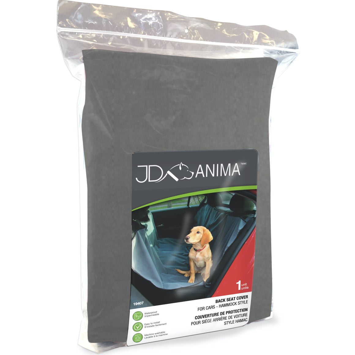 Standard hammoc style car back seat cover. This protective car seat cover allows you to bring your pet in the car without fear of ruining your backseat ! Made of resistant material, it protects your seat from scratches, dirt and hair.  The seat cover Is easy to install and is machine washable.  Fits most vehicules.  Stays in place thanks to elastic belts.