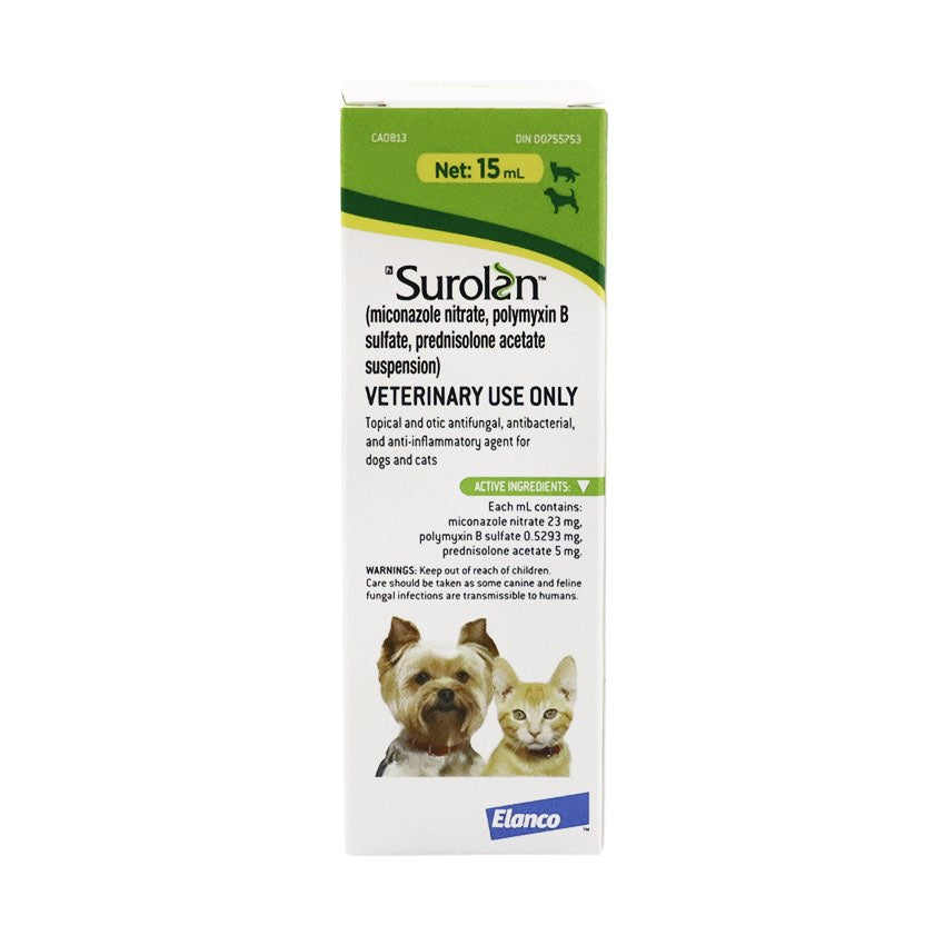 • Each mL of SUROLAN Drops contains: Miconazole nitrate 23 mg, polymyxin B sulfate 0.5293 mg, prednisolone acetate 5 mg.