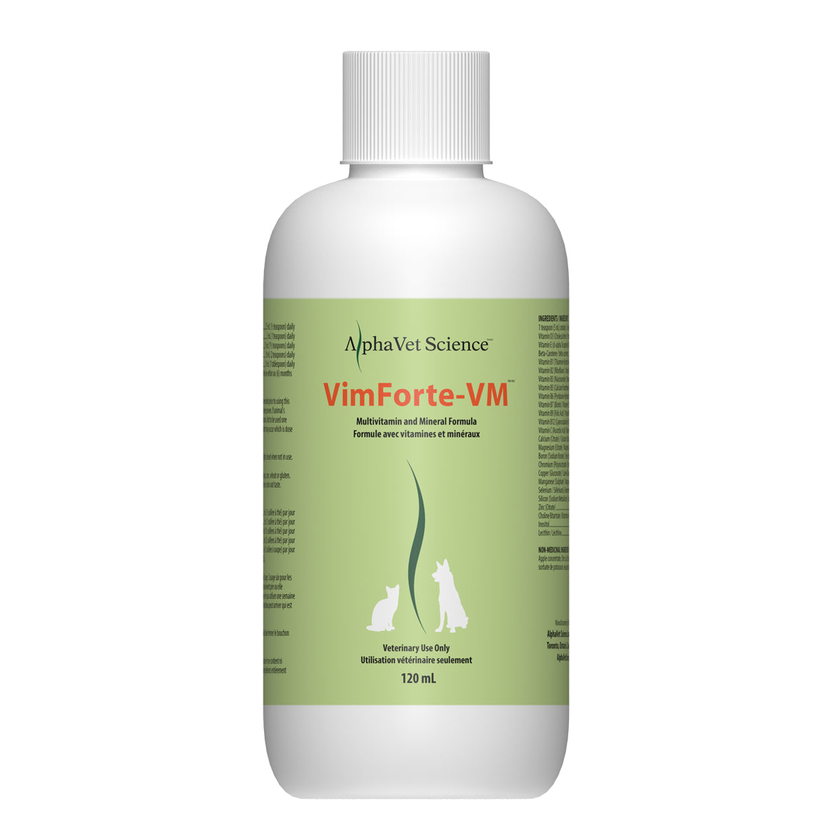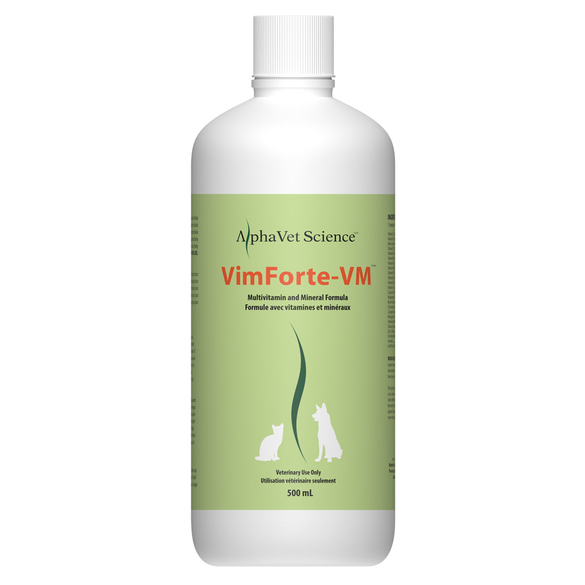 VimForte-VM™ is a nutritional supplement of macro-minerals, micro-minerals, fat-soluble vitamins, water-soluble vitamins and antioxidants essential for diverse biochemical functions. For use in cats and dogs only. VimForte-VM™ is manufactured under strict GMP standards and contains no dairy, yeast, corn, or wheat or gluten. Does not contain animal by-products.
